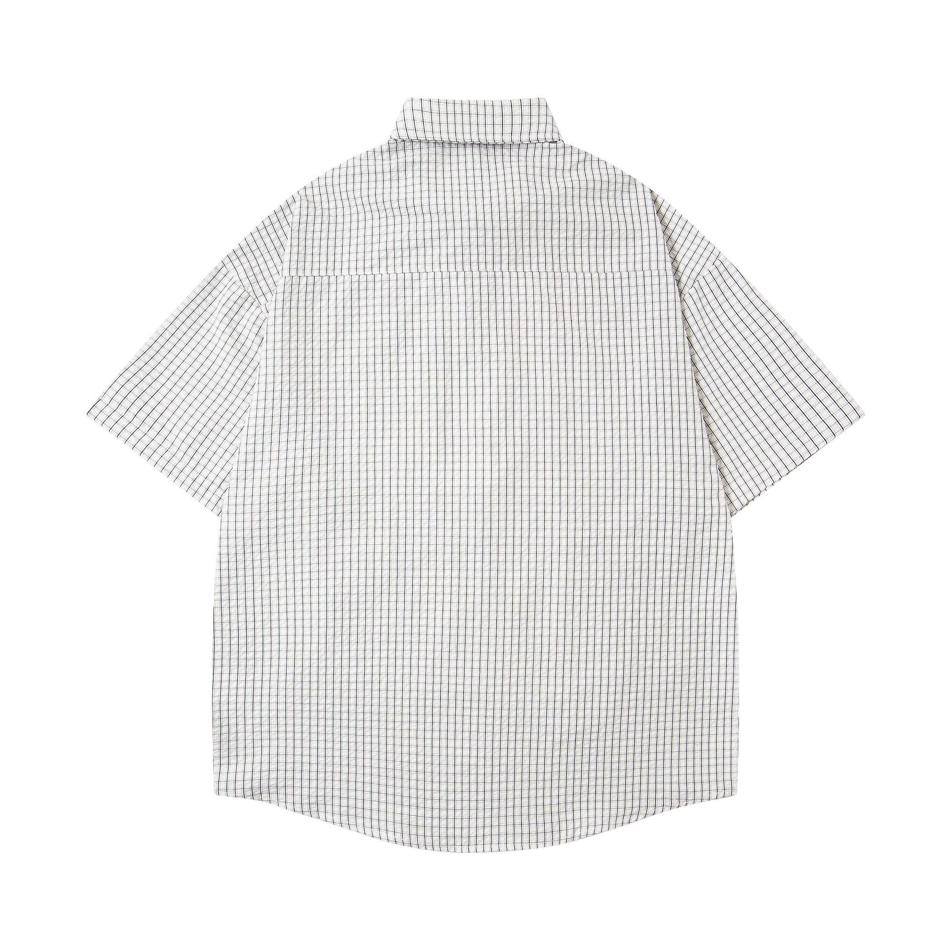Cartoon Embroidery Plaid Short Sleeve Shirt Unisex Summer Personality Loose Fit All-Match Couple Style Blouse