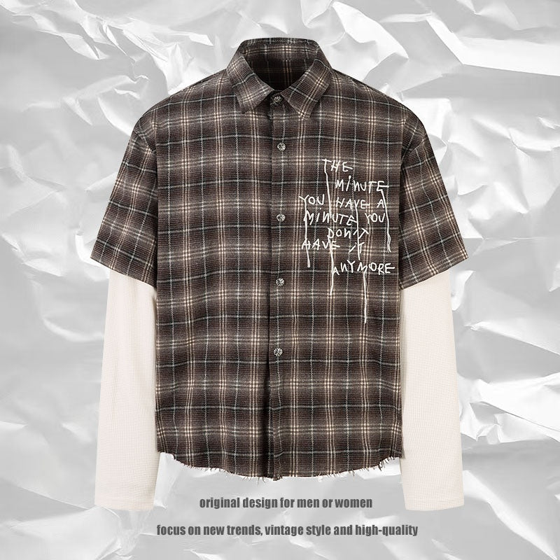 Shirt Loose Casual Fake Two-Piece Long Sleeve Blouse Jacket Top