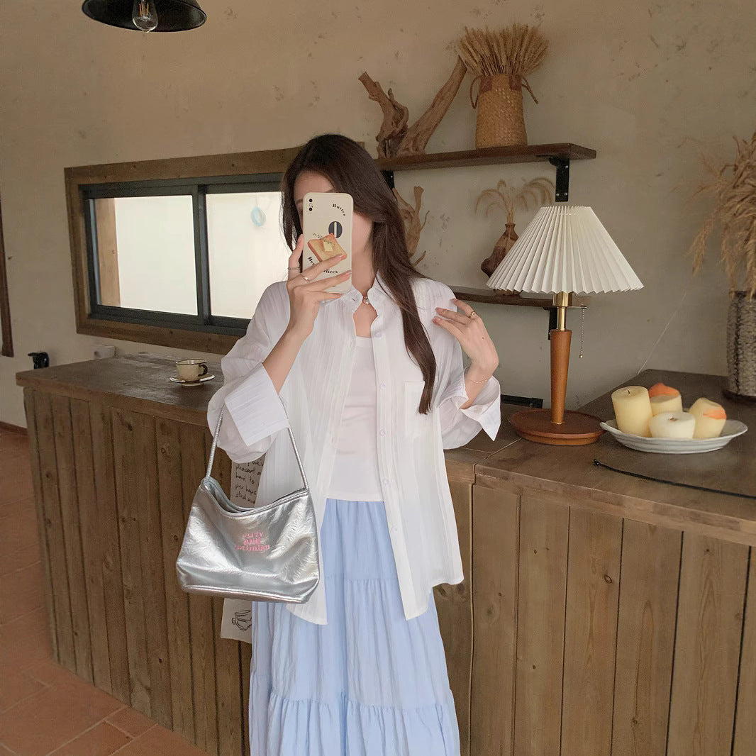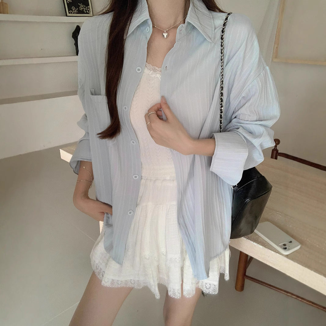 Style Plus Size Real Shot Striped Thin Shirt Women Summer Jacket New French Design Loose Top