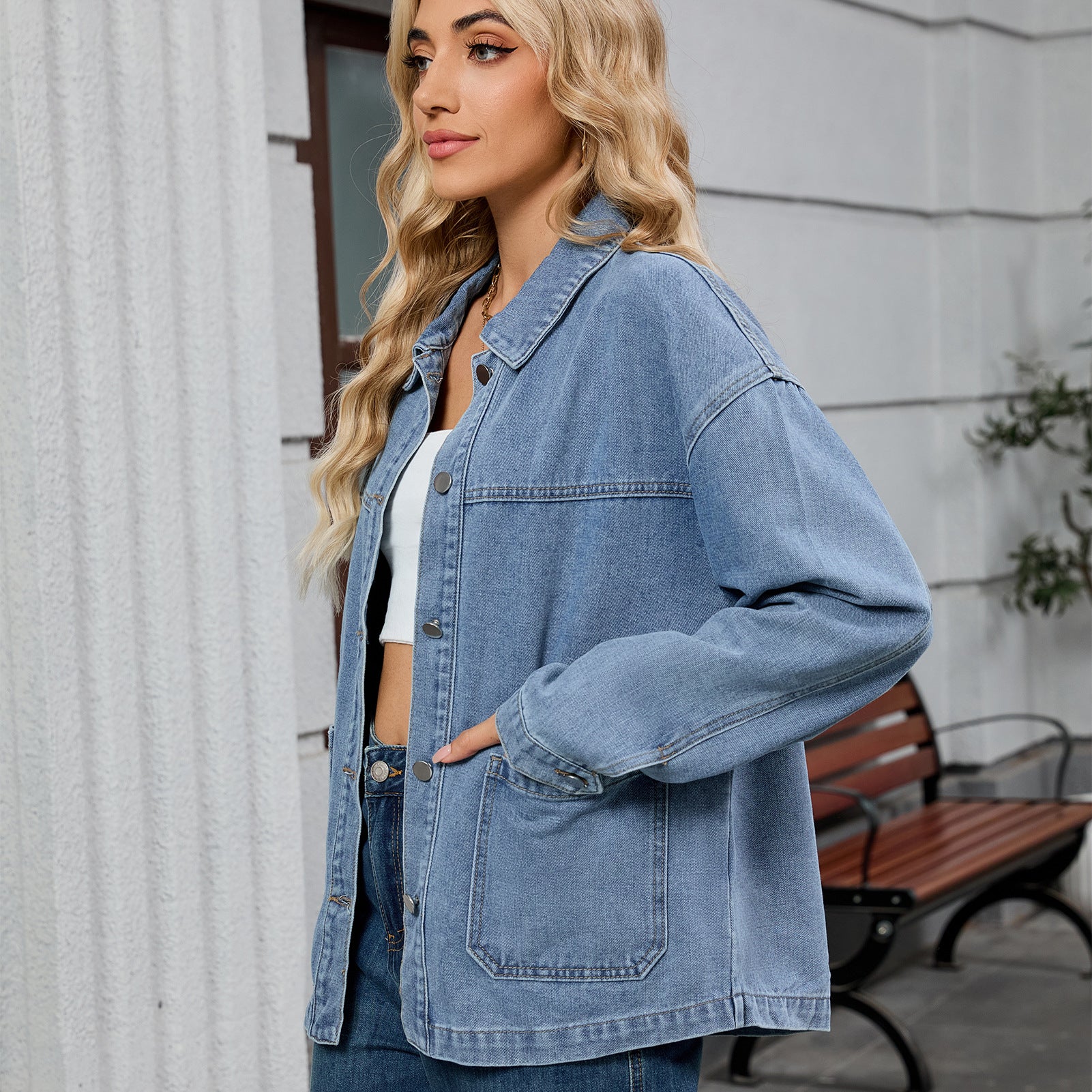 Women's Loose Casual Long-sleeved Jacket Early Autumn New Turn-down Collar Denim Jacket